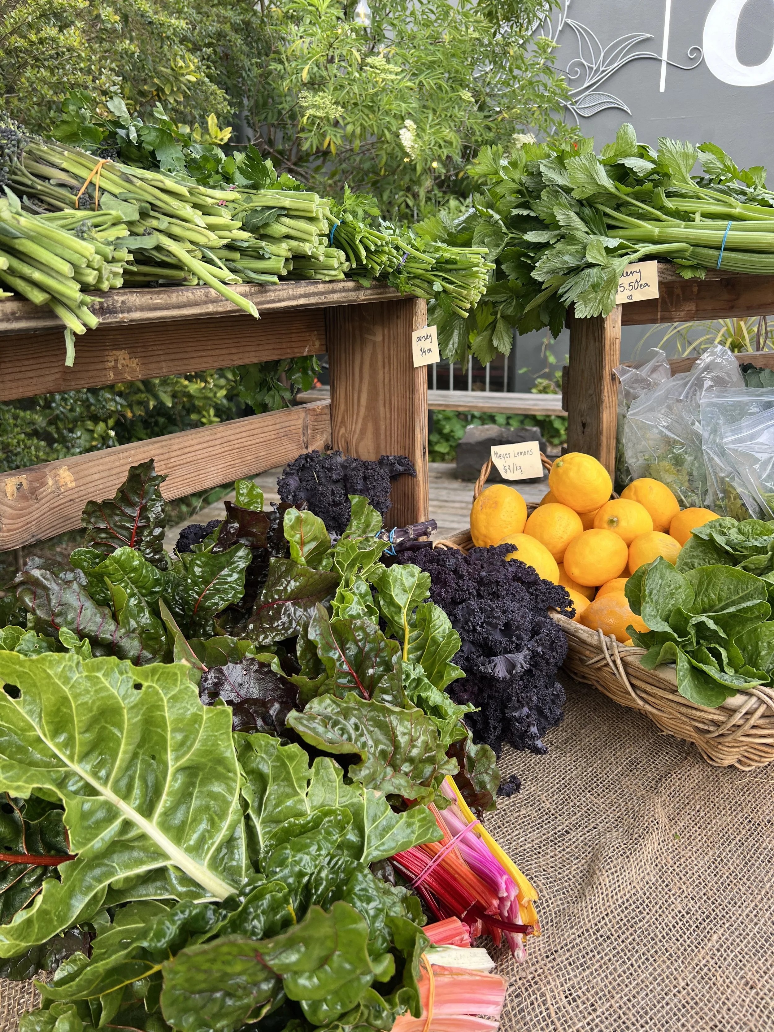 We’re always sure to bring a selection of our finest produce, organically grown and freshly harvested from our regenerative farm.